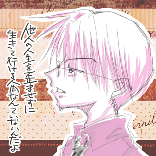 もしこのキャラでこの台詞を、ってのがあればコメとか横レスとか拍手とかで寄せてもらえると嬉しいです。なんかこう…こういうときは、繋がってるっていう感覚がつかめるとほっとする。滅入るニュースばかりだから、そういう繋がりに暖かさを求めてしまう。