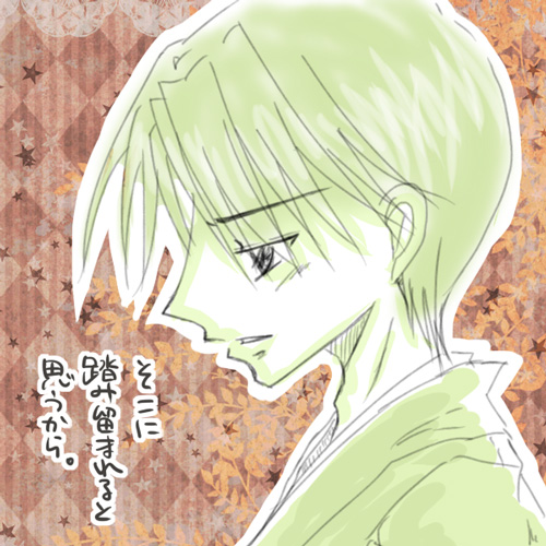 緑基調で彩色したら、なんか…秋彦の顔色がものすごく悪く見える件(しかしそれはそれで不健康そうという公式設定があるのでスルーしておくことにする)。